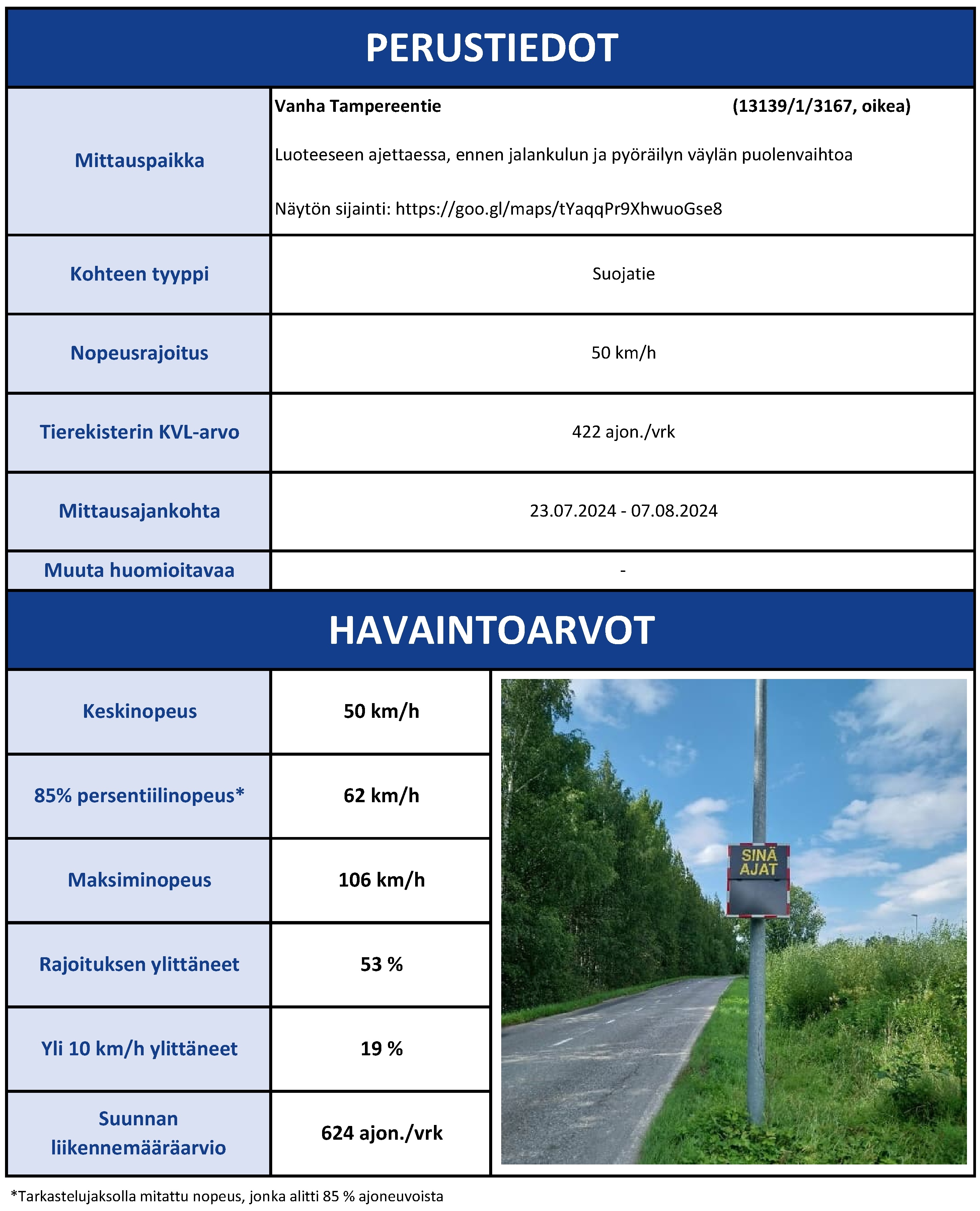 Pyydämme kaikkia autoilijoita kiinnittämään erityistä huomiota nopeusrajoituksiin ja ajamaan vastuullisesti. Ylinopeus lisää onnettomuusriskiä ja vaarantaa kaikkien tienkäyttäjien turvallisuuden.