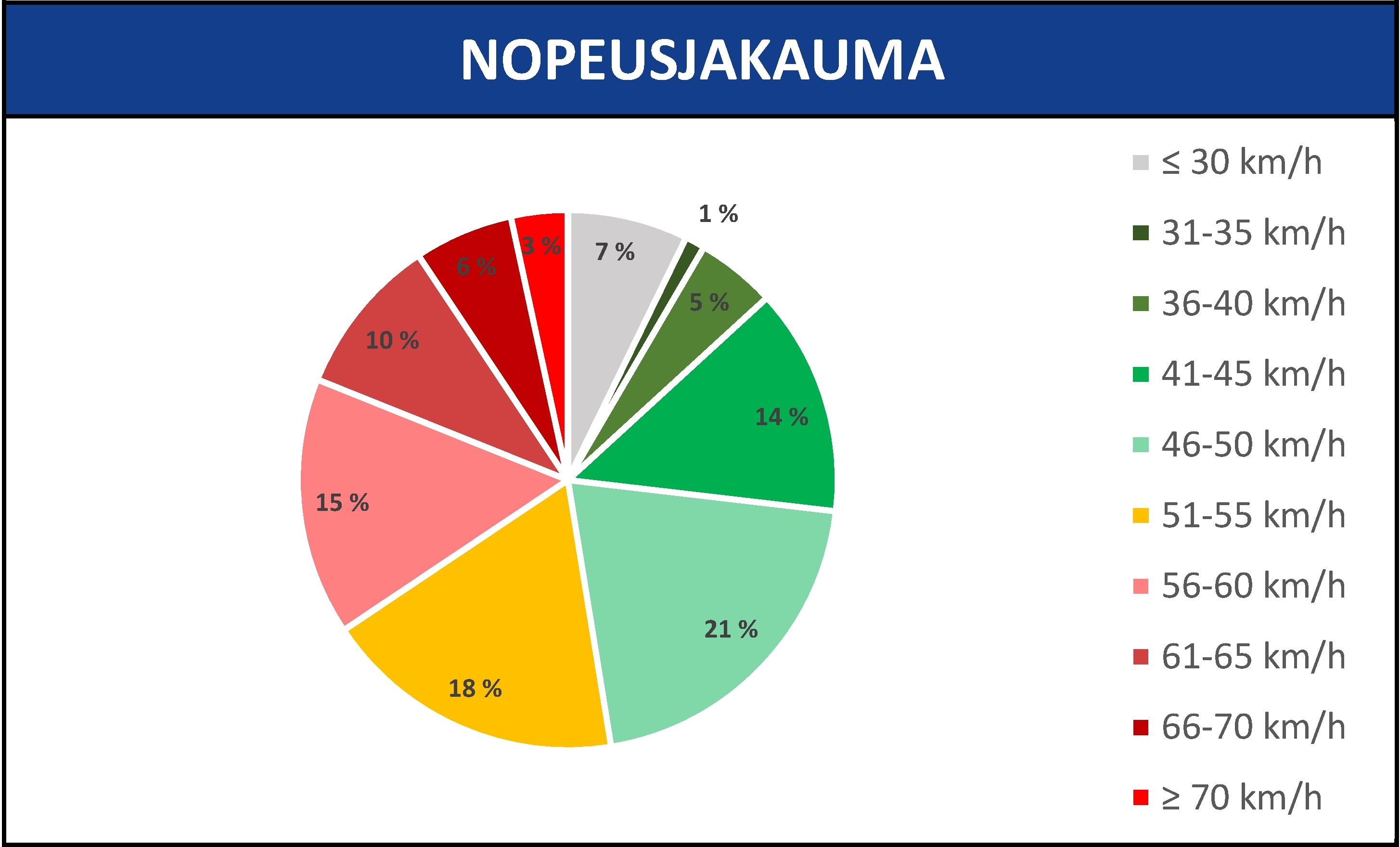 Useilla mittauspaikoilla jopa yli 10 % kuljettajista ajaa huomattavaa ylinopeutta. Kuulutko sinä tähän ryhmään? Ole varovaisempi – pienikin ylinopeus voi aiheuttaa vakavia seurauksia.