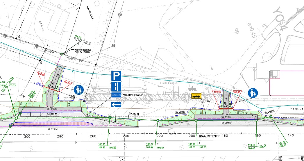 Katusuunnitelmaa täydennetään rakentamalla Valkean ruusun koulun välittömään läheisyyteen kaksi saattopysäkkiä.