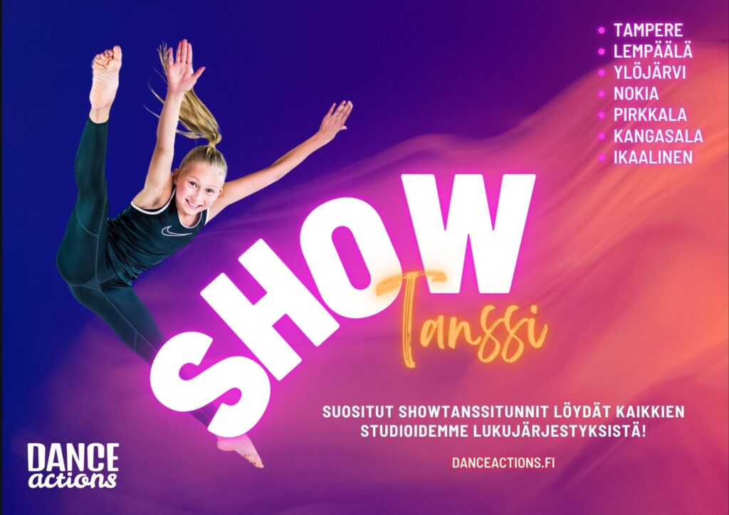 Showtanssi on vauhdikas ja monipuolinen esittävän tanssin laji, josta tanssiharrastus on helppo aloittaa. Showtanssin tekniikka pohjaa pääasiallisesti jazztanssiin, nykytanssiin ja balettiin, mutta showtanssi voi ottaa vaikutteita mistä tahansa tanssin lajista ja tyylistä. Tanssitunnin sisältöön vaikuttavatkin suuresti opettajan oma tyyli ja persoonallisuus sekä käytettävä musiikki, joka voi olla kaikkea klassisesta musiikista tämän päivän listahitteihin. Showtanssi on esittävää tanssia, jossa kerrotaan tarinaa kehon liikekielen ja tunnetilojen avulla. Tunnilla pääpaino on esittävissä tanssisarjoissa, jotka kehittävät ilmaisukykyä ja rohkaisevat esiintymään. Sen lisäksi tunnilla tunneilla tehdään myös paljon erilaisia tekniikkaharjoituksia sekä salin poikki että keskilattialla. Keskeisessä roolissa on kuitenkin aina ilmaisukyky, eläytyminen ja tanssi ilo!
