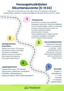 Perheliikuntaneuvonta on maksuton palvelu lapsiperheille, jotka kaipaavat tukea perheen yhteisen liikkumistavan tai harrastuksen etsimiseen, terveellisempien elintapojen omaksumiseen ja kokonaisvaltaiseen hyvinvointiin. Varhaiskasvatuksen liikunnanohjaaja on kanssakulkijana ja hyvinvoinnin tukijana mukana perheen liikkuvan elämäntavan polulla.