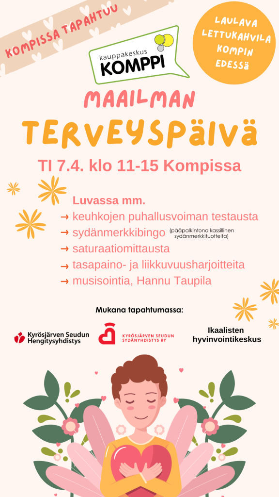 Mukana tapahtumassa on Kyrösjärven Seudun Hengitysyhdistys, Kyrösjärven Seudun Sydänliitto ja Ikaalisten hyvinvointikeskus.