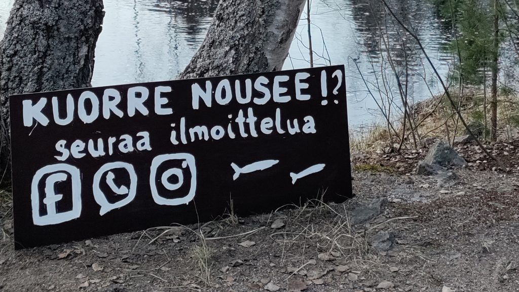 Kuorrerieha Luhalahden kuorrelaiturin kupeessa Huopionkosken alajuoksulla 21.4. klo 19.