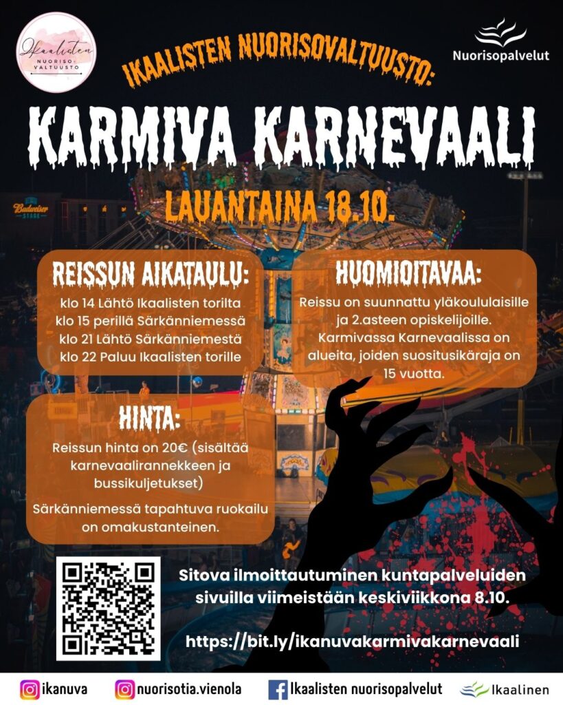 Ikaalisten nuorisovaltuusto järjestää reissun Särkänniemen Karmivaan Karnevaaliin lauantaina 18.10.2025 klo 14-22.