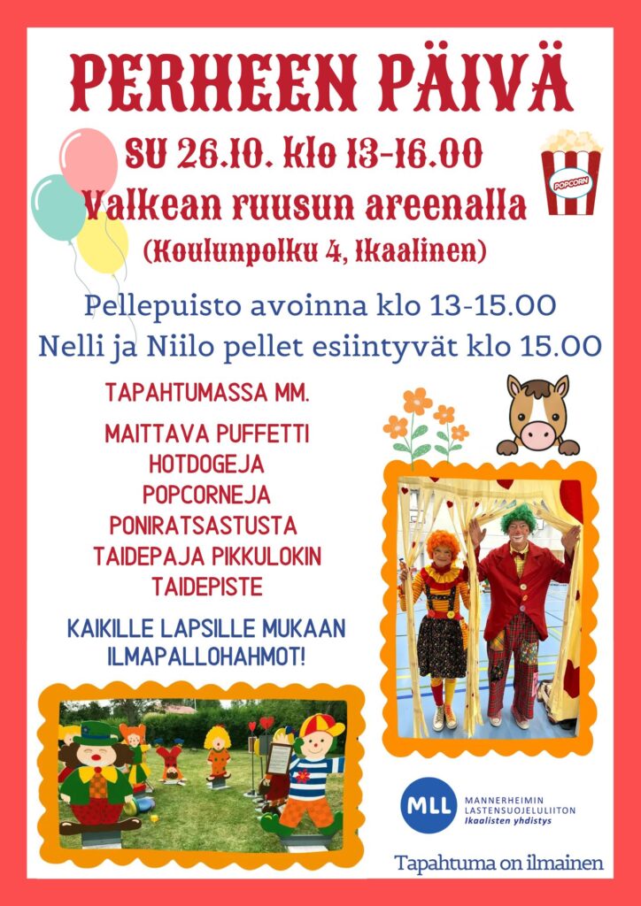 MLL:n Ikaalisten yhdistys järjestää taas Perheen päivän Valkean ruusun areenalla osoitteessa Koulunpolku 4, Ikaalinen.