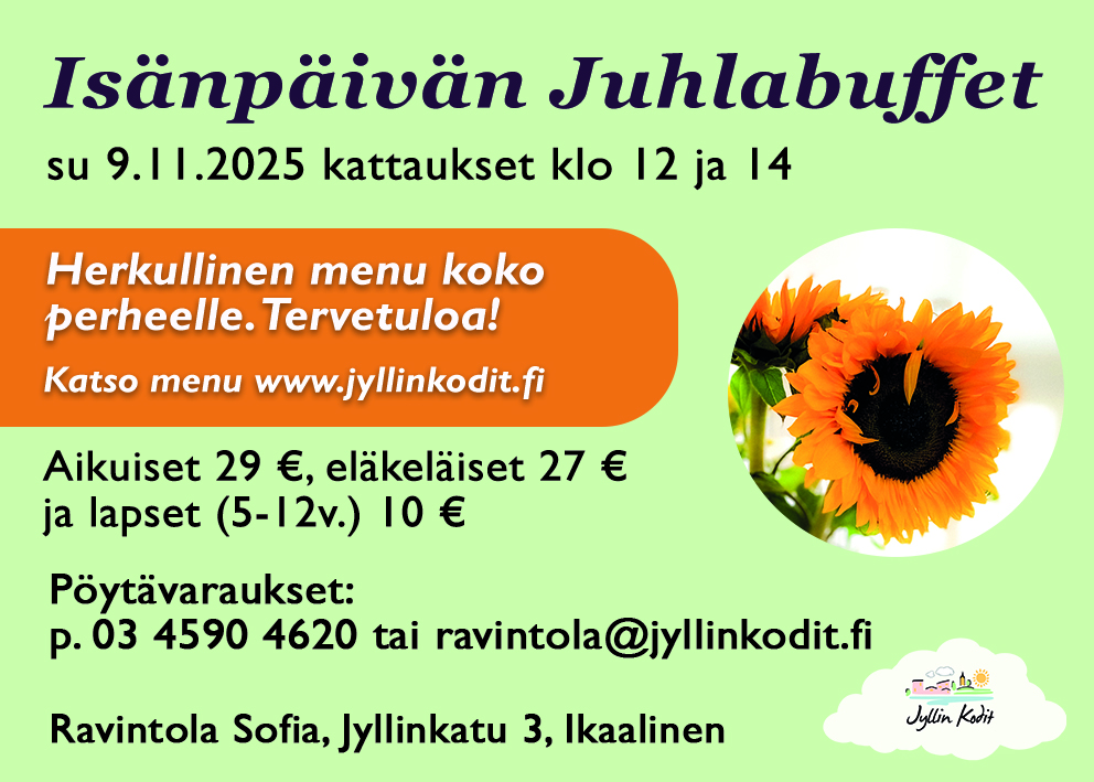 Pöytävaraukset: puh. 03 4590 4620, ravintola@jyllinkodit.fi