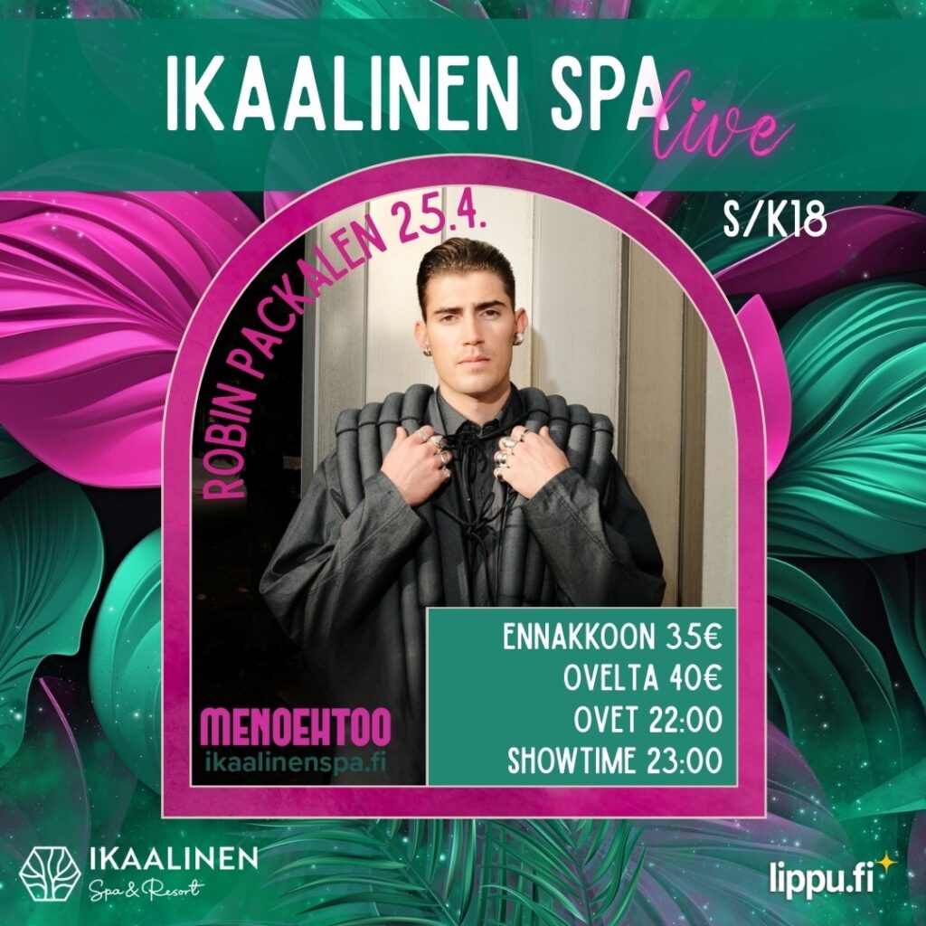 Lauantaina 25.4. Ikaalinen Spa täyttyy valosta, energiasta ja musiikista kun Robin Packalen saapuu lavalle tuomaan kevään kuumimman show’n! Suomen karismaattisimpiin ja energisimpiin artisteihin kuuluva Robin tunnetaan hittibiiseistään ja huikeasta lavapresenssistään, joka saa yleisön mukaansa ensimmäisestä tahdista lähtien.
